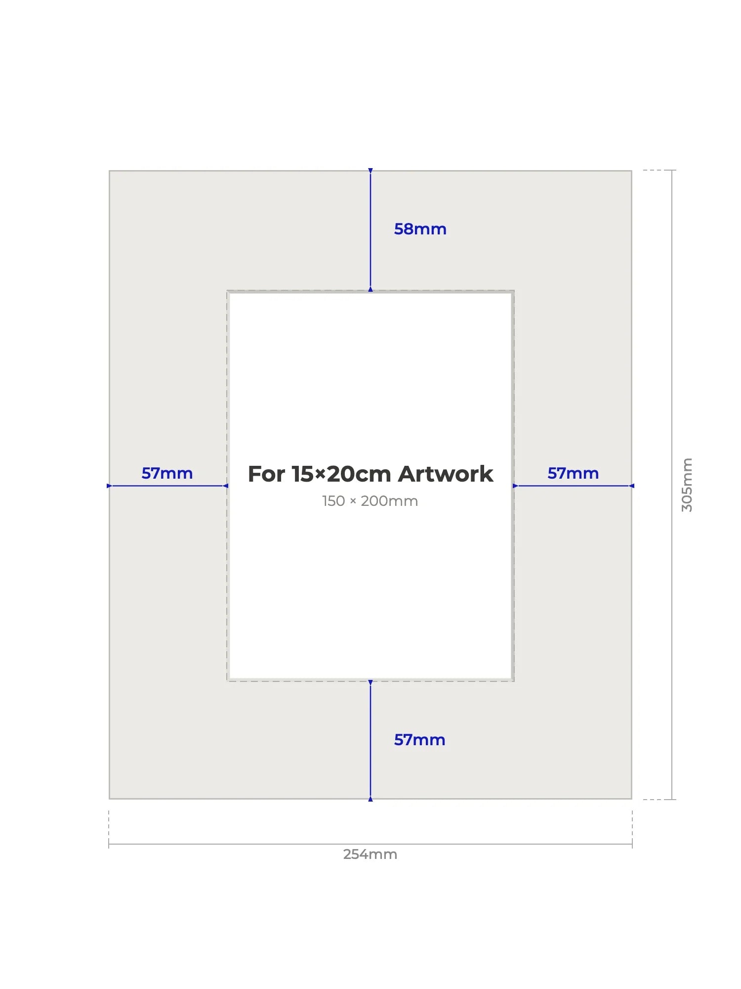 15 × 20 cm - Note, we will cut the aperture slightly smaller than the artwork size to ensure a perfect fit