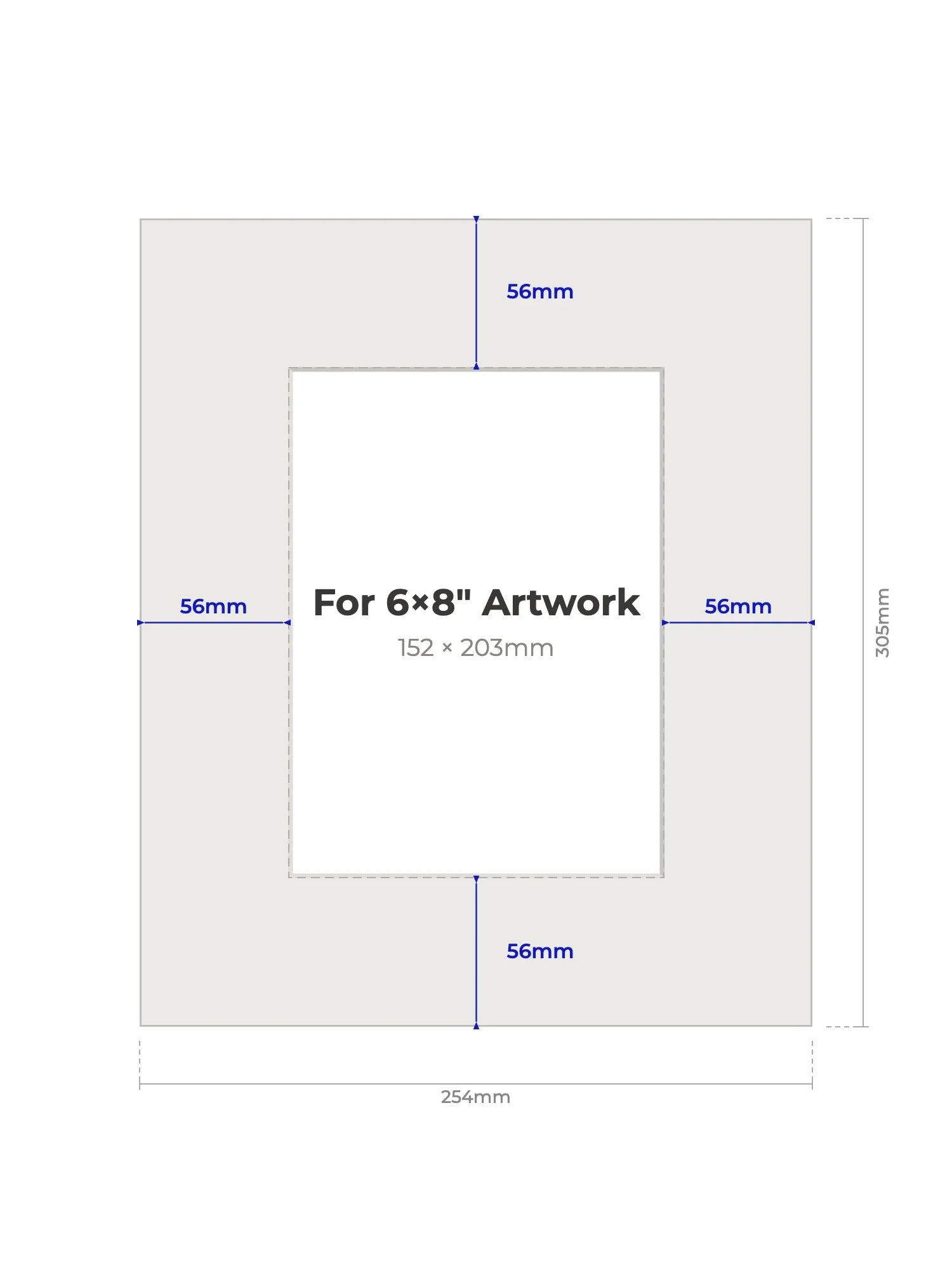 6" × 8" (152 × 203mm) - Note, we will cut the aperture slightly smaller than the artwork size to ensure a perfect fit