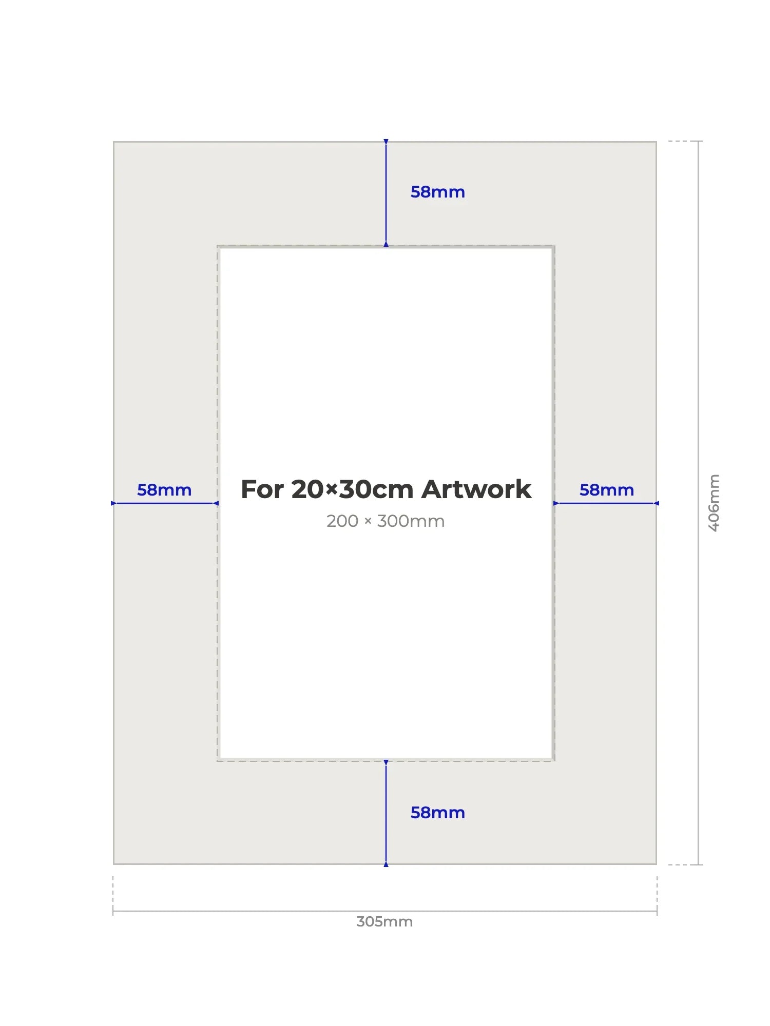 20 × 30 cm - Note, we will cut the aperture slightly smaller than the artwork size to ensure a perfect fit