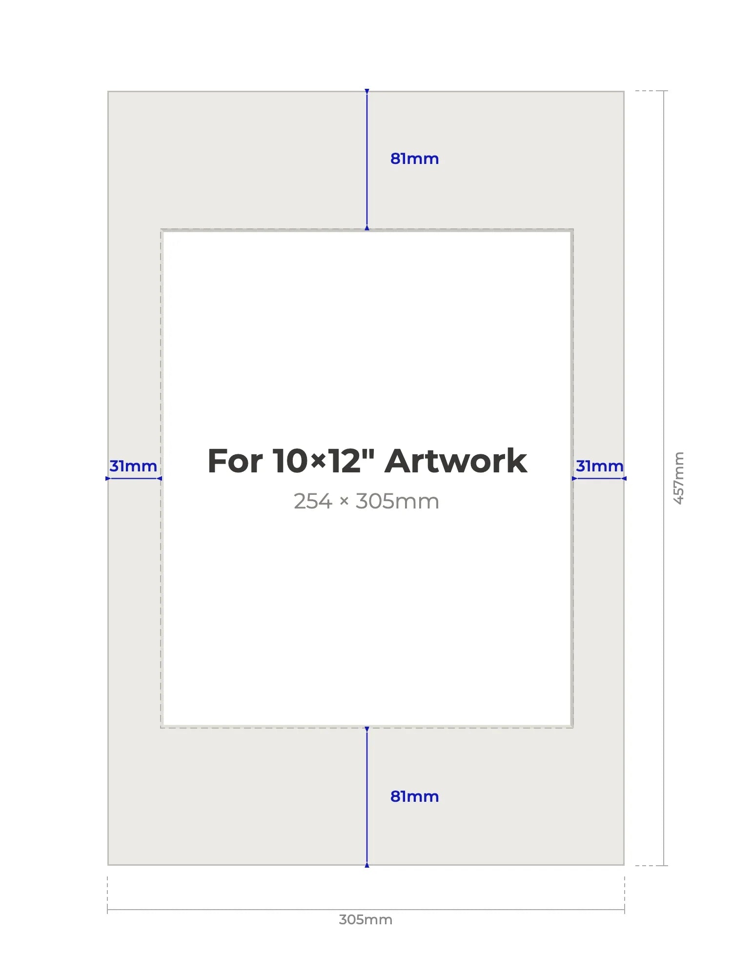 10" × 12" (254 × 305mm) - Note, we will cut the aperture slightly smaller than the artwork size to ensure a perfect fit
