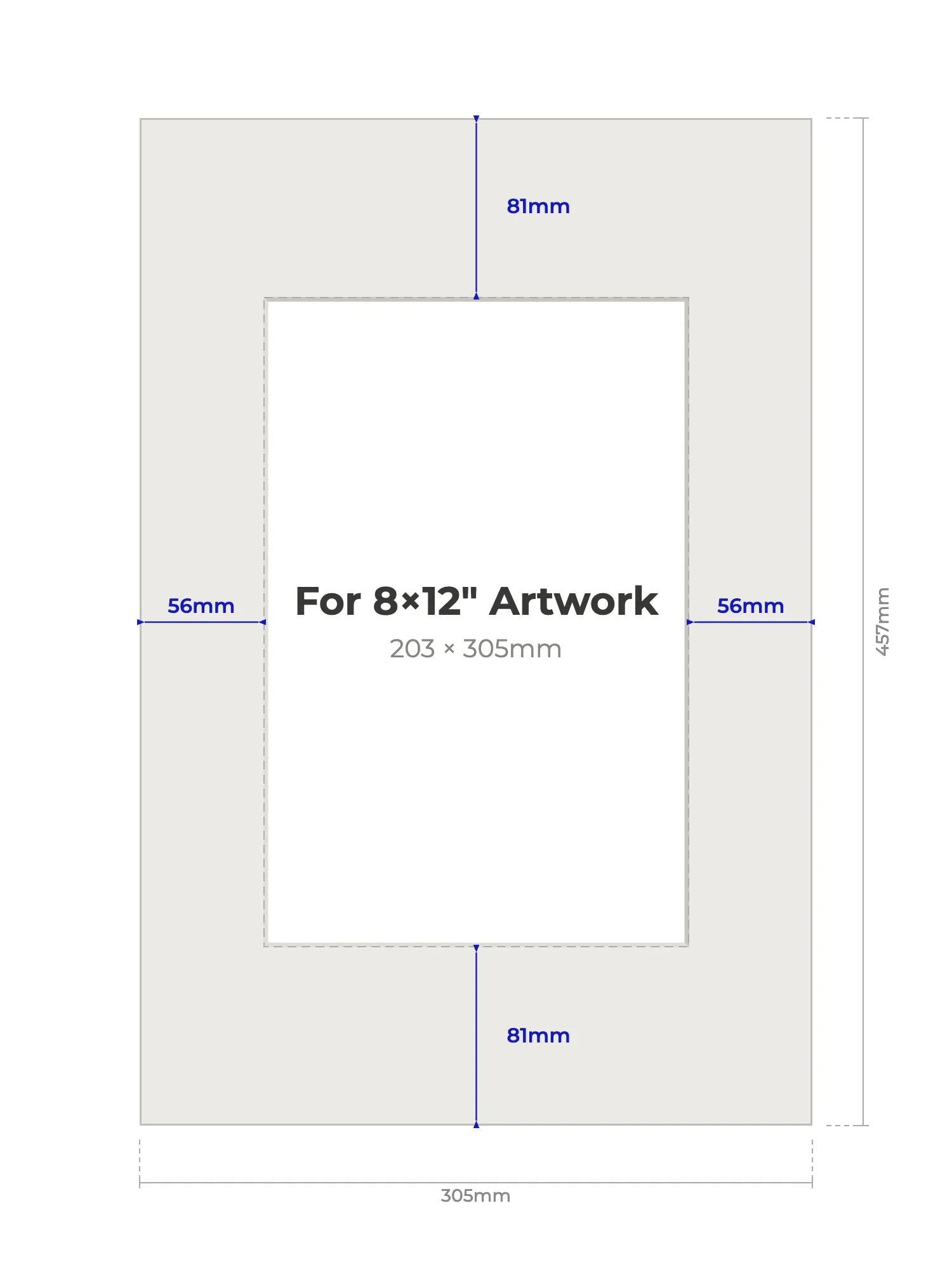 8" × 12" (203 × 305mm) - Note, we will cut the aperture slightly smaller than the artwork size to ensure a perfect fit