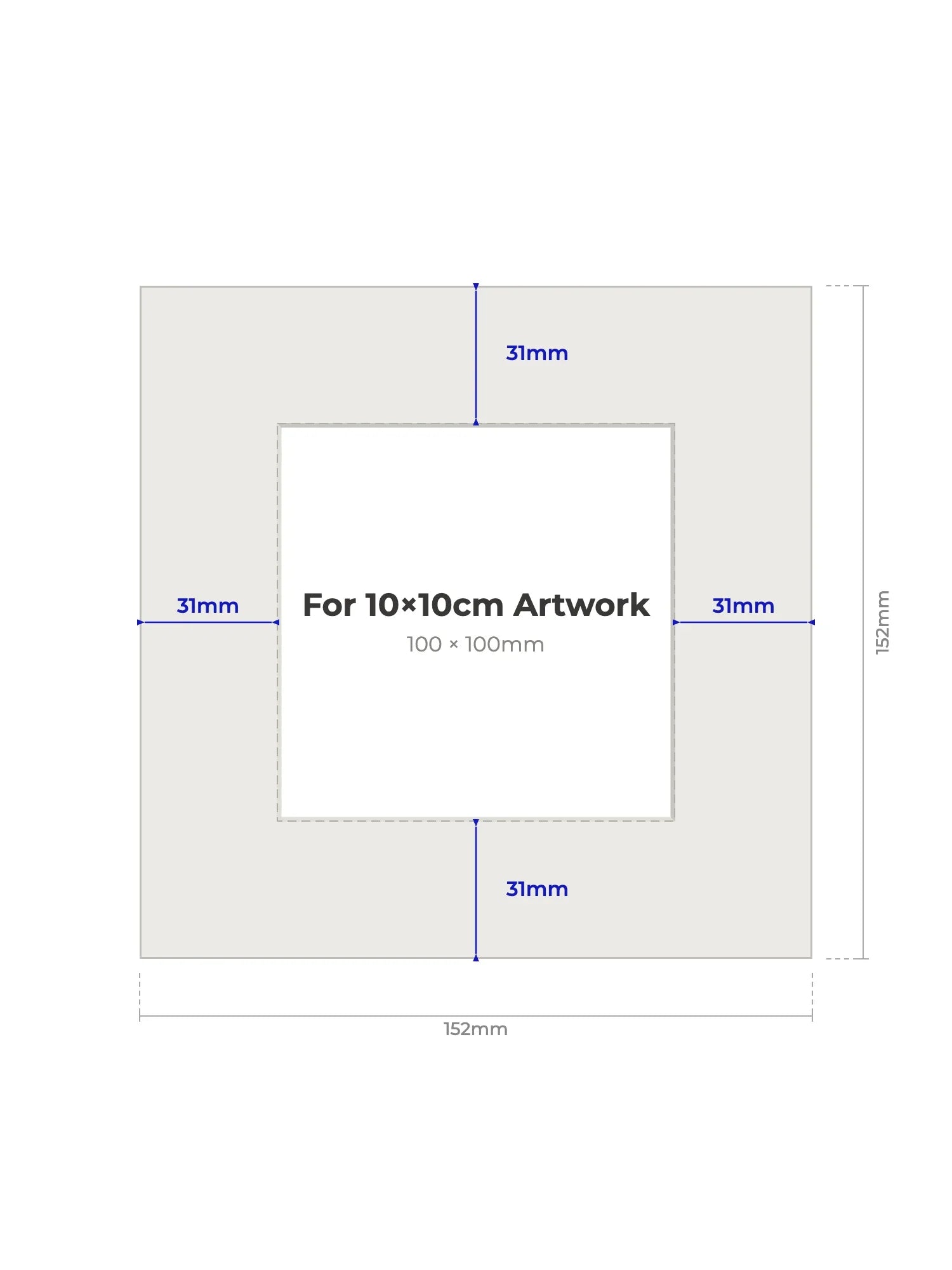 Mount Size = 152 × 152 mm Picture Mount for 100 × 100 mm Artwork