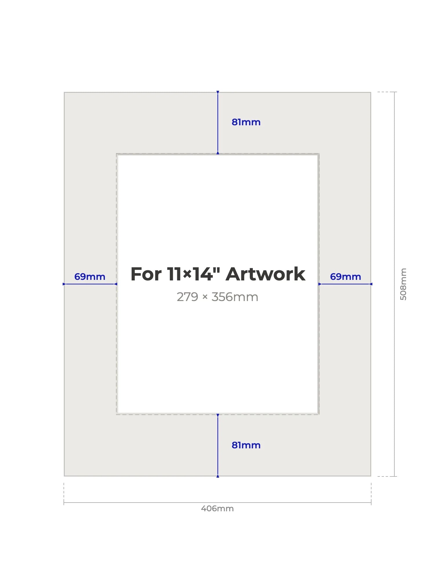 11" × 14" (279 × 356mm) - Note, we will cut the aperture slightly smaller than the artwork size to ensure a perfect fit