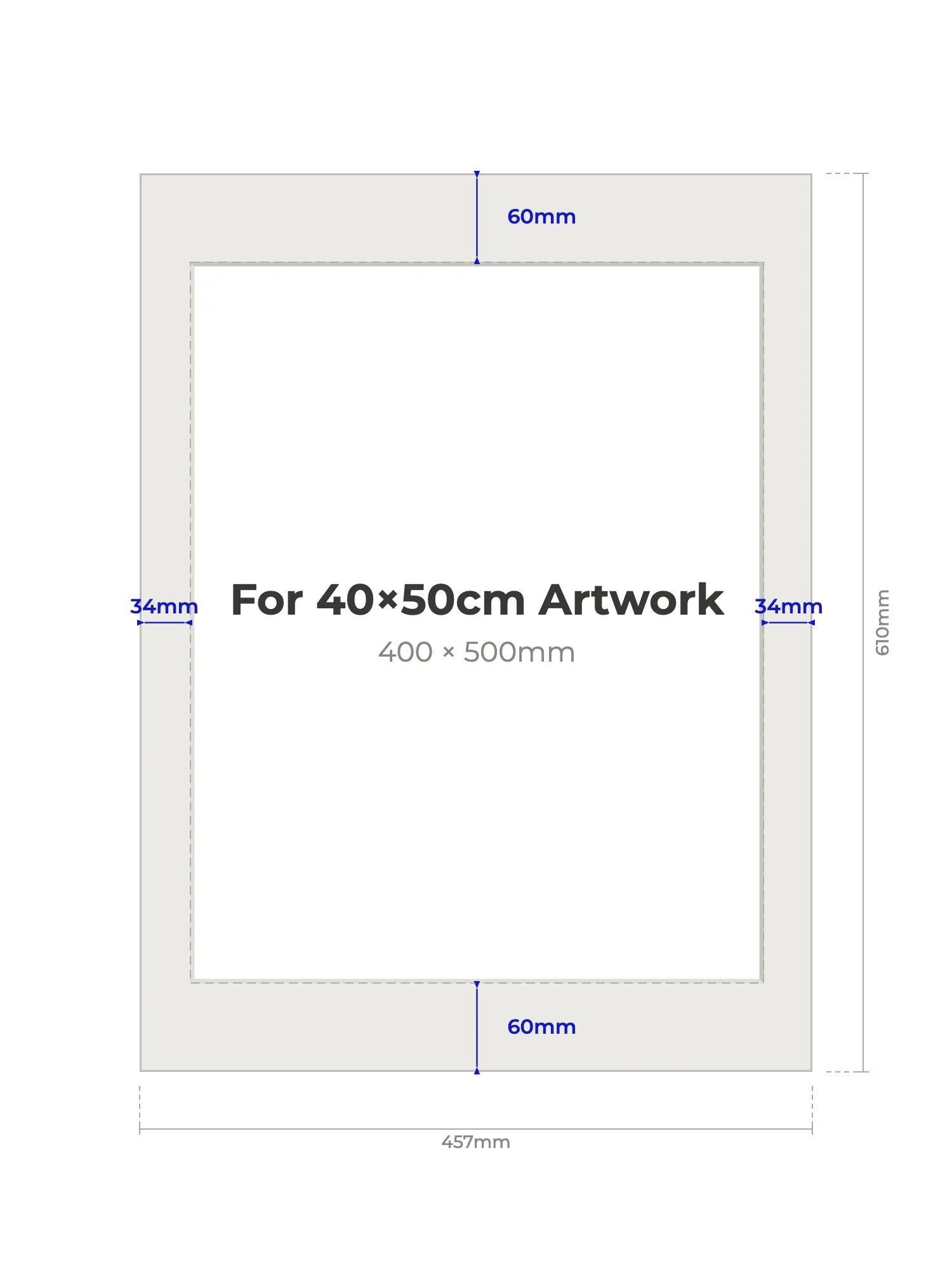 40 × 50 cm - Note, we will cut the aperture slightly smaller than the artwork size to ensure a perfect fit