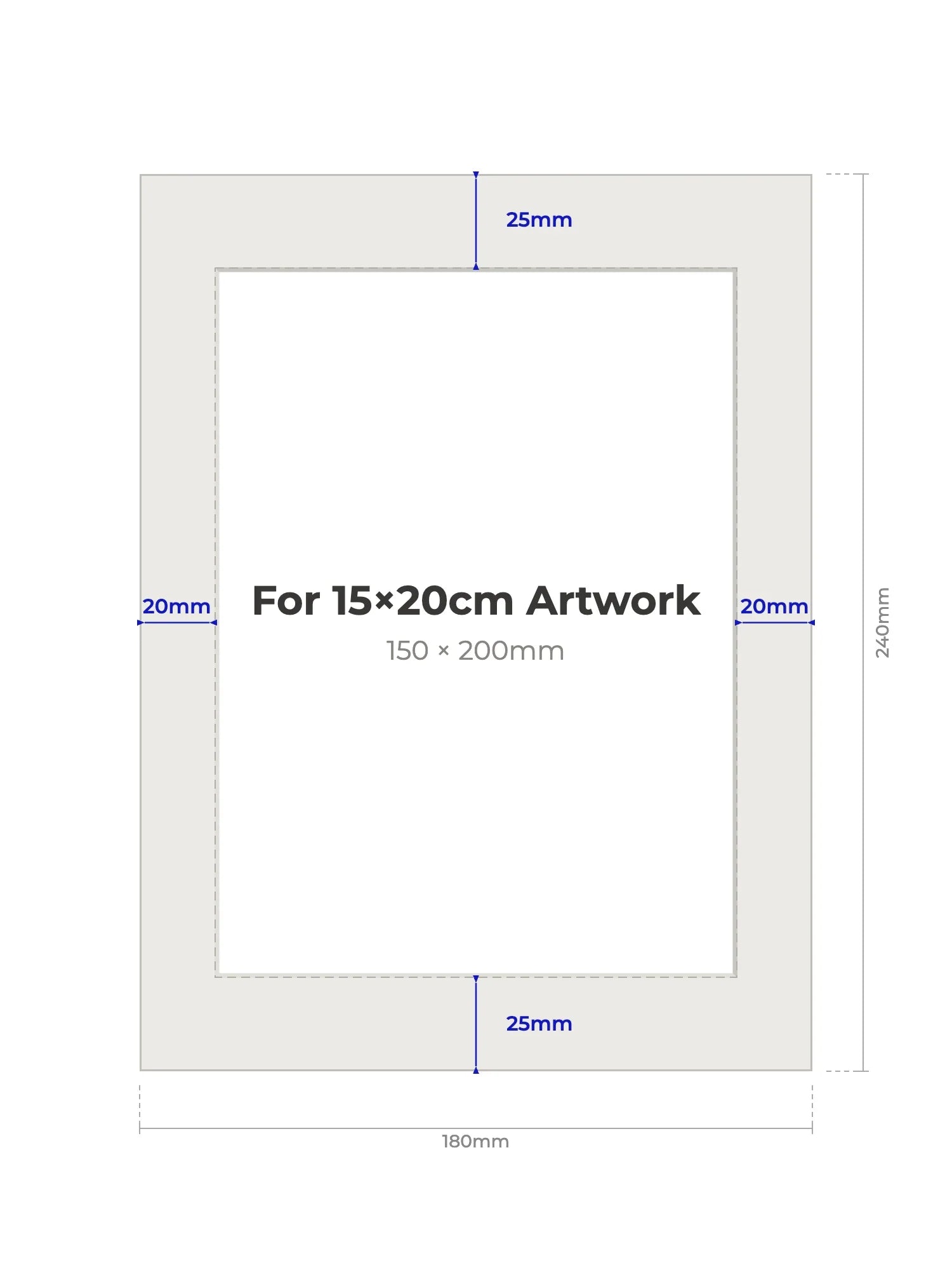 15 × 20 cm - Note, we will cut the aperture slightly smaller than the artwork size to ensure a perfect fit