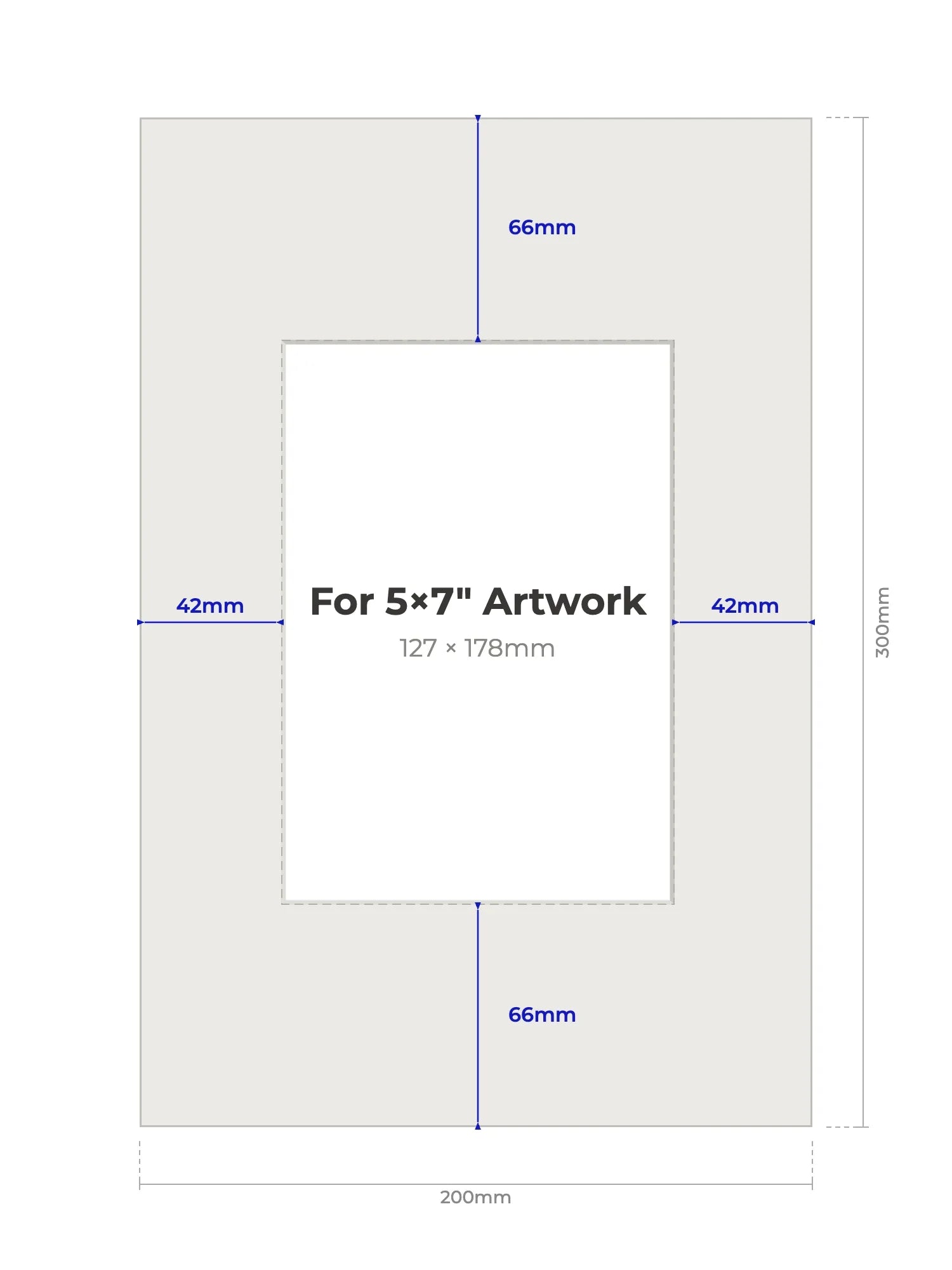 1. Before ordering, it’s worth double-checking your measurements. Measure the full width and height of your artwork, as this is the size the mount window is designed to hold. The window is cut slightly smaller than the artwork so it sits securely behind the mount board. This mount will be made to fit an artwork measuring 5" × 7" (127 × 178mm).