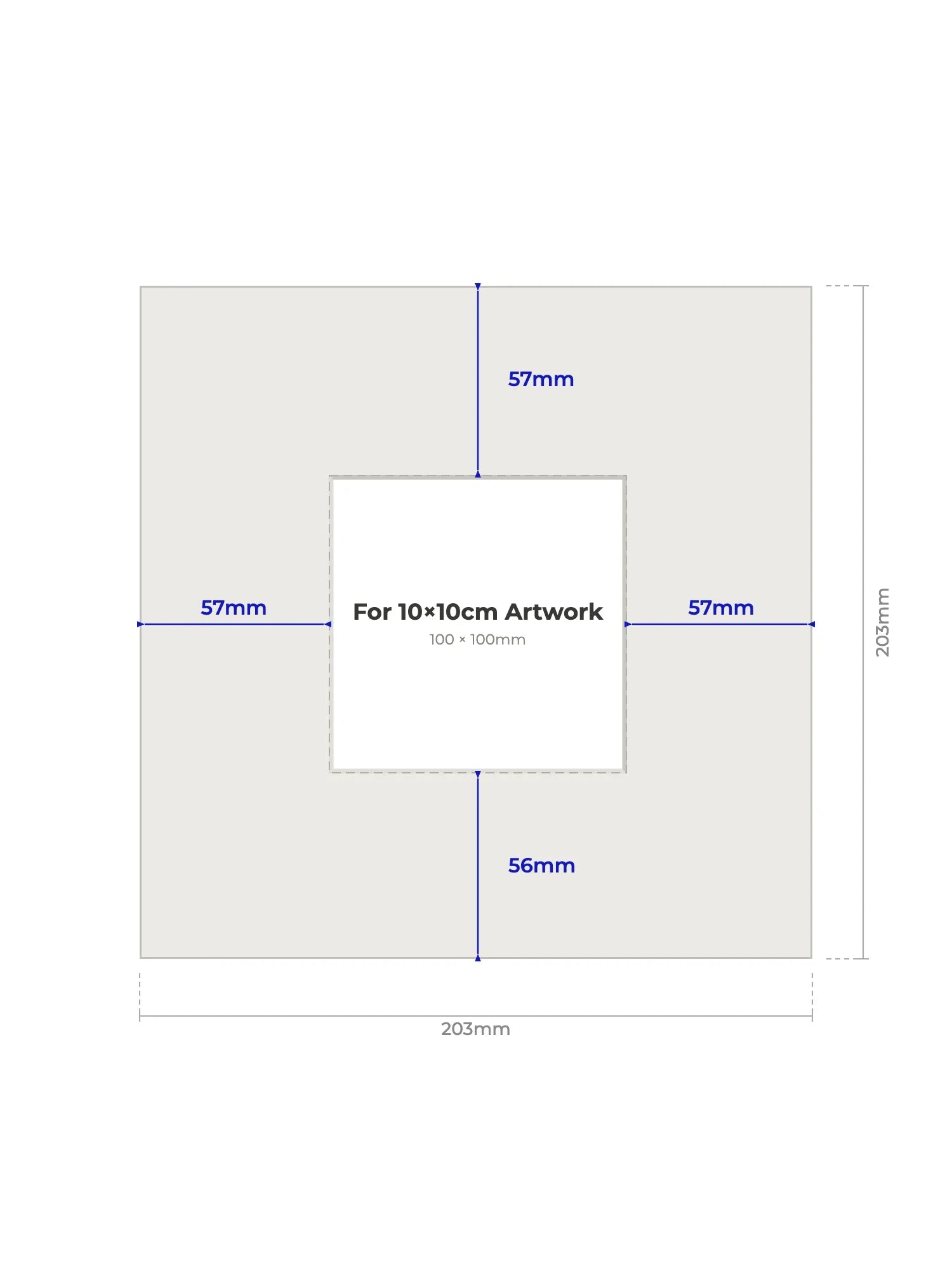100 × 100mm - Note, we will cut the aperture slightly smaller than the artwork size to ensure a perfect fit