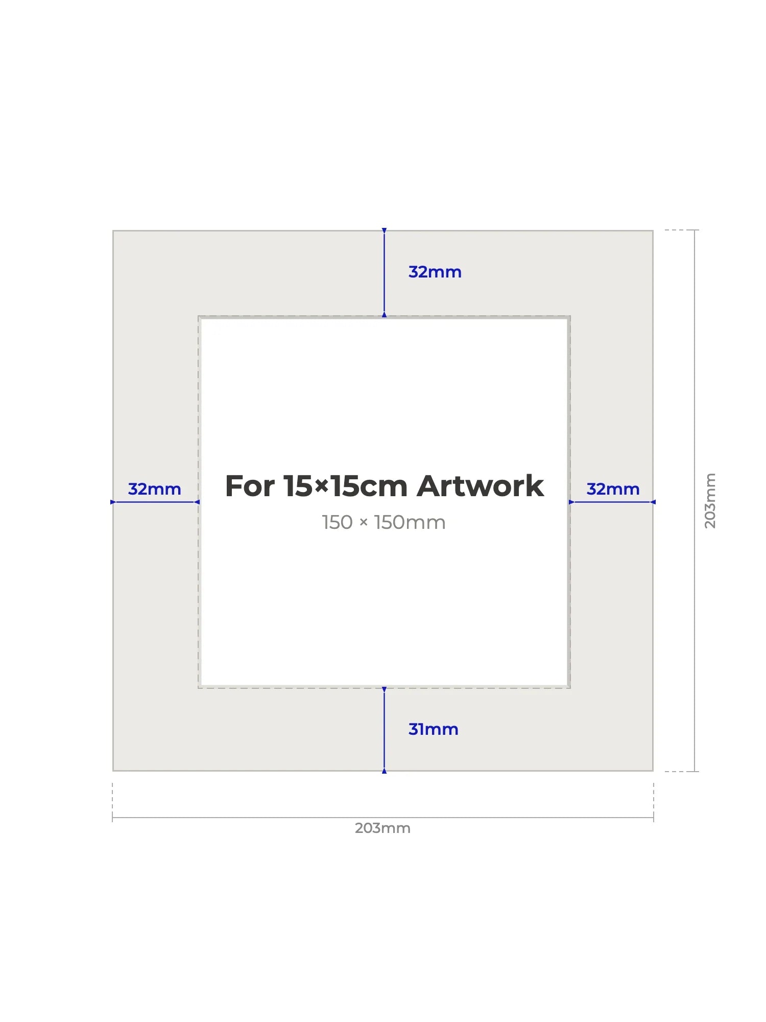 Mount Size = 203 × 203 mm Picture Mount for 150 × 150 mm Artwork