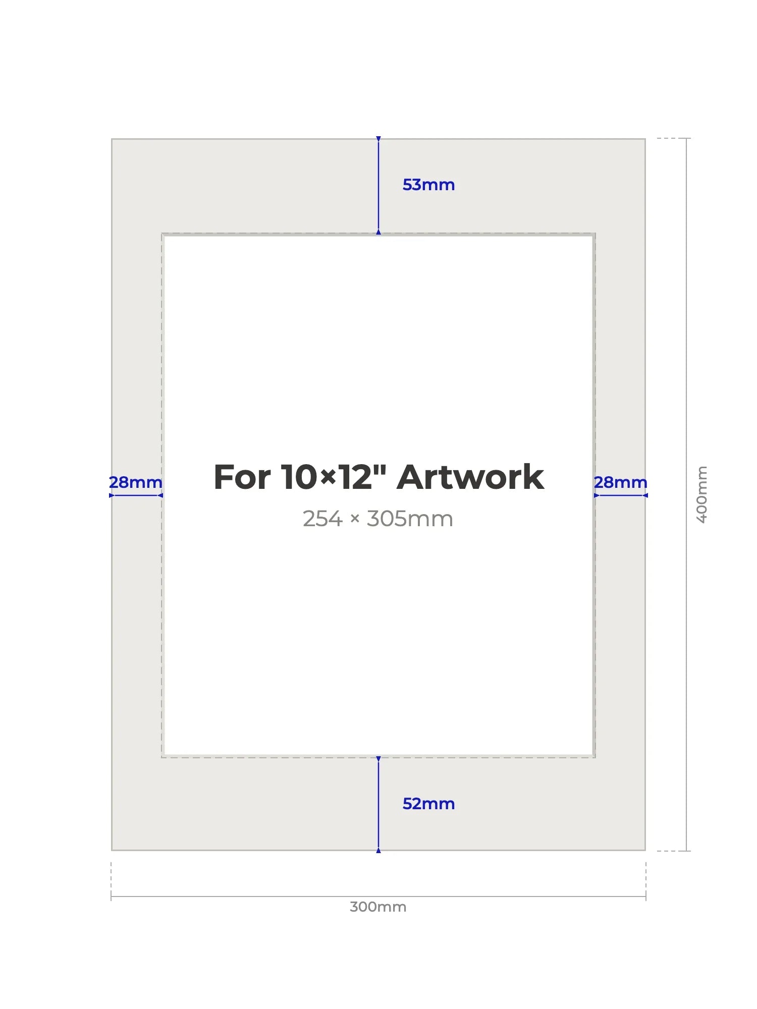 10" × 12" (254 × 305mm) - Note, we will cut the aperture slightly smaller than the artwork size to ensure a perfect fit