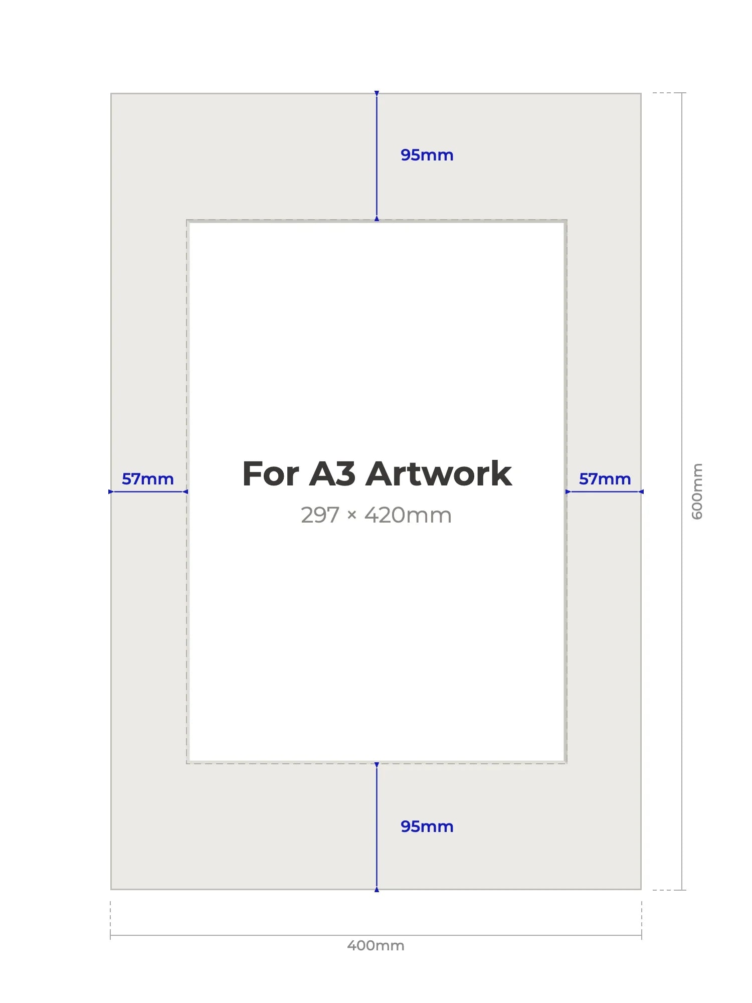 A3 (297 × 420mm) - Note, we will cut the aperture slightly smaller than the artwork size to ensure a perfect fit