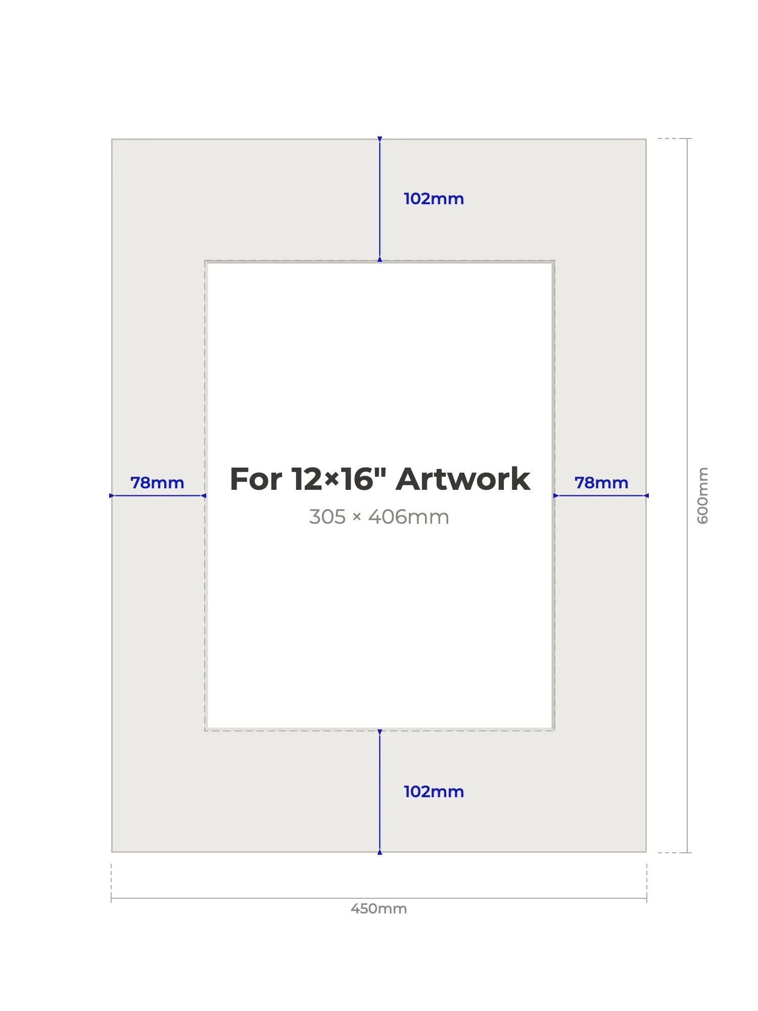 12" × 16" (305 × 406mm) - Note, we will cut the aperture slightly smaller than the artwork size to ensure a perfect fit