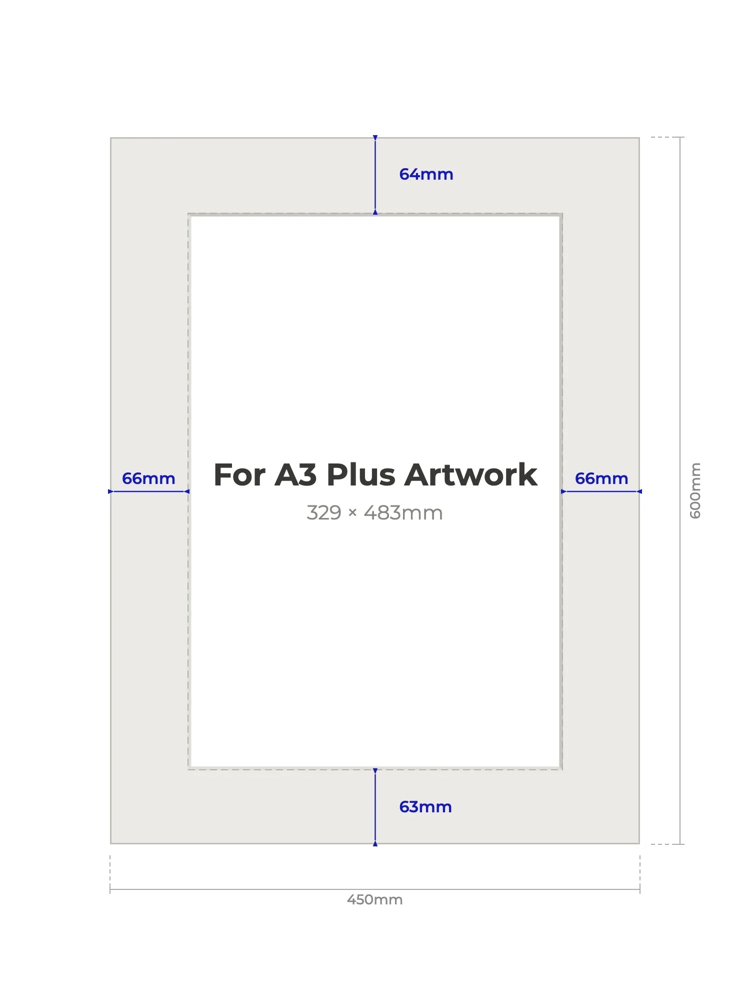 A3 Plus (329 × 483mm) - Note, we will cut the aperture slightly smaller than the artwork size to ensure a perfect fit