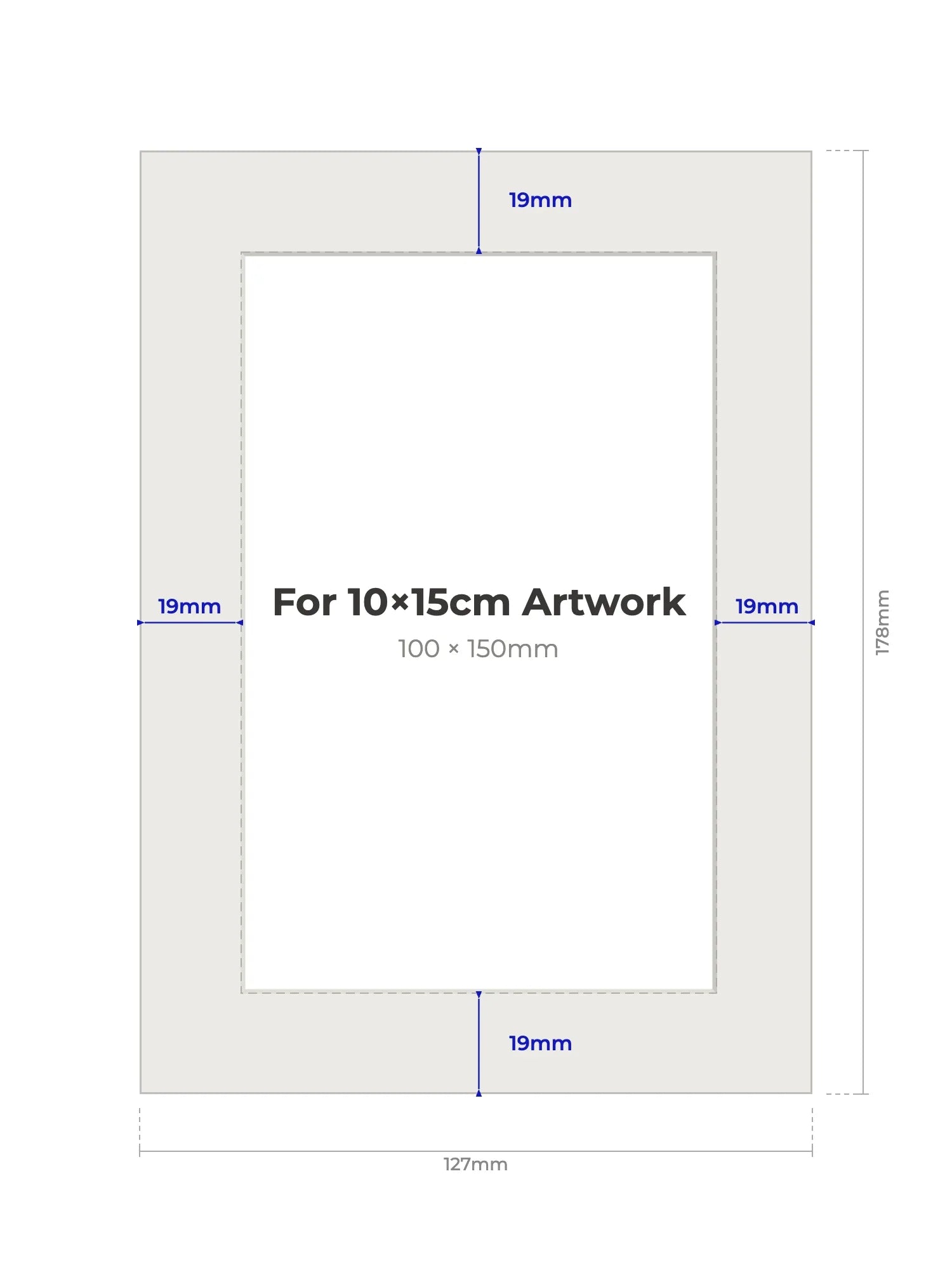 10 × 15 cm - Note, we will cut the aperture slightly smaller than the artwork size to ensure a perfect fit