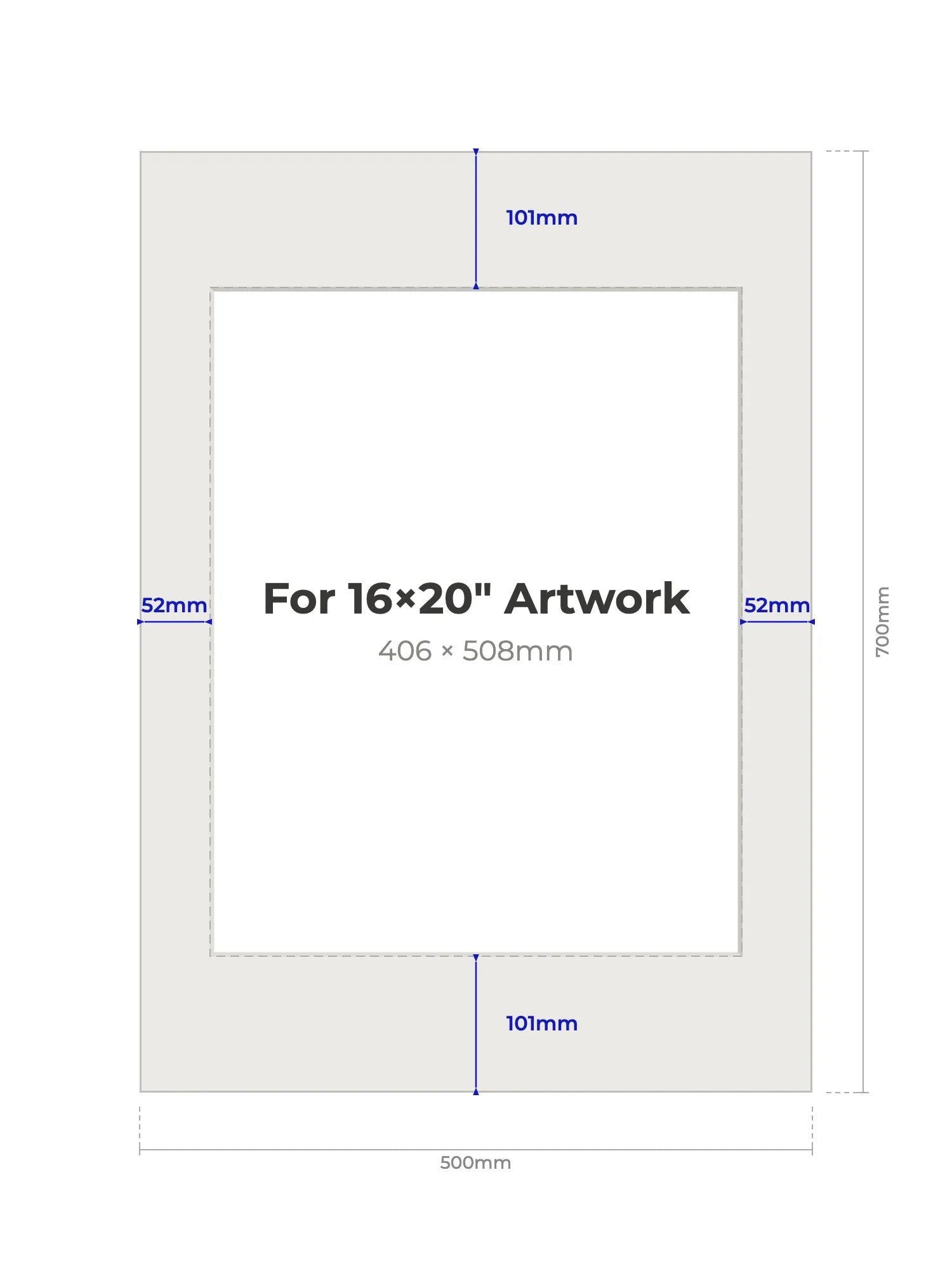 16" × 20" (406 × 508mm) - Note, we will cut the aperture slightly smaller than the artwork size to ensure a perfect fit