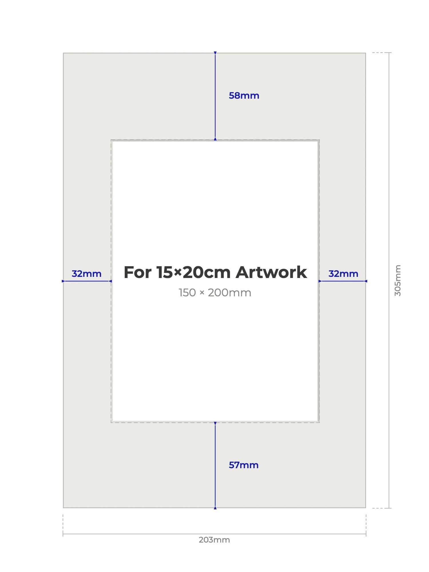 15 × 20 cm - Note, we will cut the aperture slightly smaller than the artwork size to ensure a perfect fit
