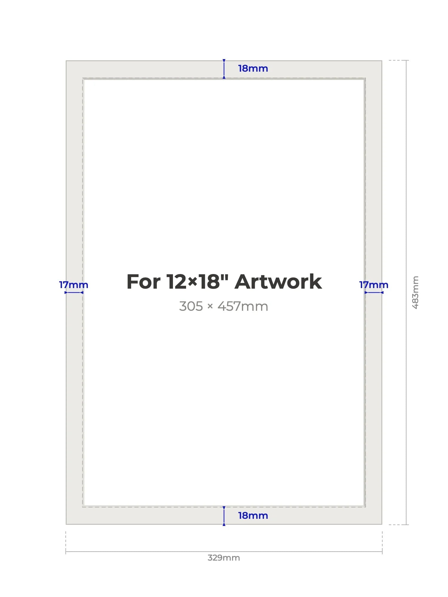 12" × 18" (305 × 457mm) - Note, we will cut the aperture slightly smaller than the artwork size to ensure a perfect fit